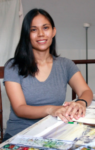 Julianne S. Delmar is a painter and homeschool mom based in Cebu, Philippines. She studied Fine Arts, majoring in Painting, at the University of San Carlos. Her favorite subjects—urban street scenes and food—reflect the vibrant, everyday life that surrounds her. Here’s what she says about her art: